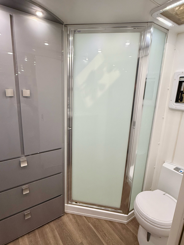 • Massive wardrobe in bathroom with deep drawers for ample storage
